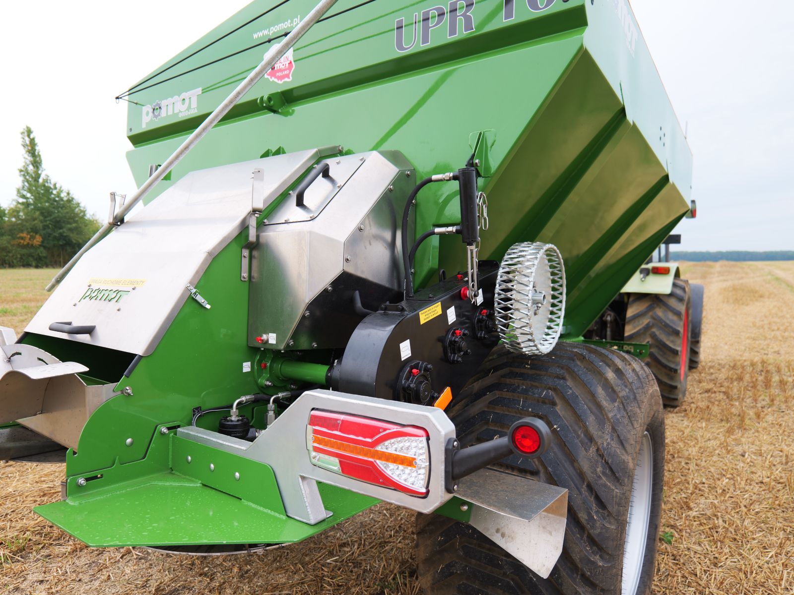 – Niezależna Hydraulika (napędzana poprzez Multiplikator firmy POMOT). Dzięki własnemu układowi hydraulicznemu talerze rozsiewające pracują z zadaną prędkością obrotową. Efekt? Idealna szerokość rozsiewu i precyzyjna aplikacja materiału, niezależnie od wydajności pompy w Twoim ciągniku.