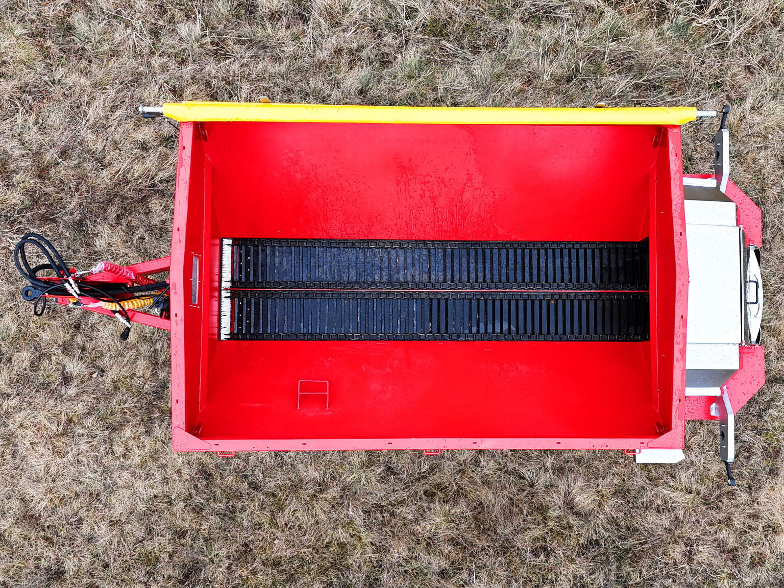 Silniki hydrauliczne rozsiewacza zasilane są olejem bezpośrednio z układu hydraulicznego ciągnika. Należy jednak pamiętać, że w zależności od zastosowanego ciągnika występuje ograniczenie maksymalnej dawki wysiewu na poziomie ok. 2–3 t/ha.