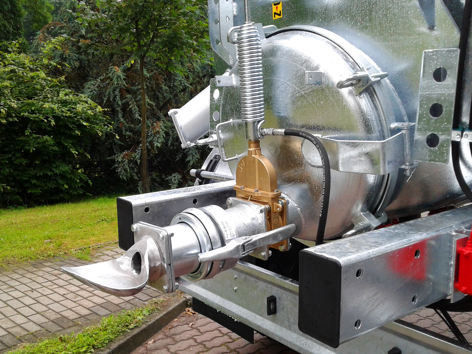 - główny króciec spustowy w pokrywie tylnego włazu 6 ̎ -z zasuwą hydrauliczną 6 ̎