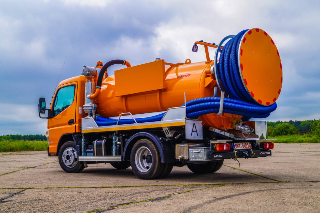 Kompaktowa, lekka zabudowa ZSAK/ZSA ssąco-płucząca na podwoziu Fuso Canter DMC 8,5t jest zaprojektowana do wszelkiego rodzaju prac w trudno dostępnych miejscach, takich jak wąskie uliczki, garaże, ogródki działkowe. Te zwarte jednostki zapewniają wysoką wydajność porównywalną z większymi pojazdami.